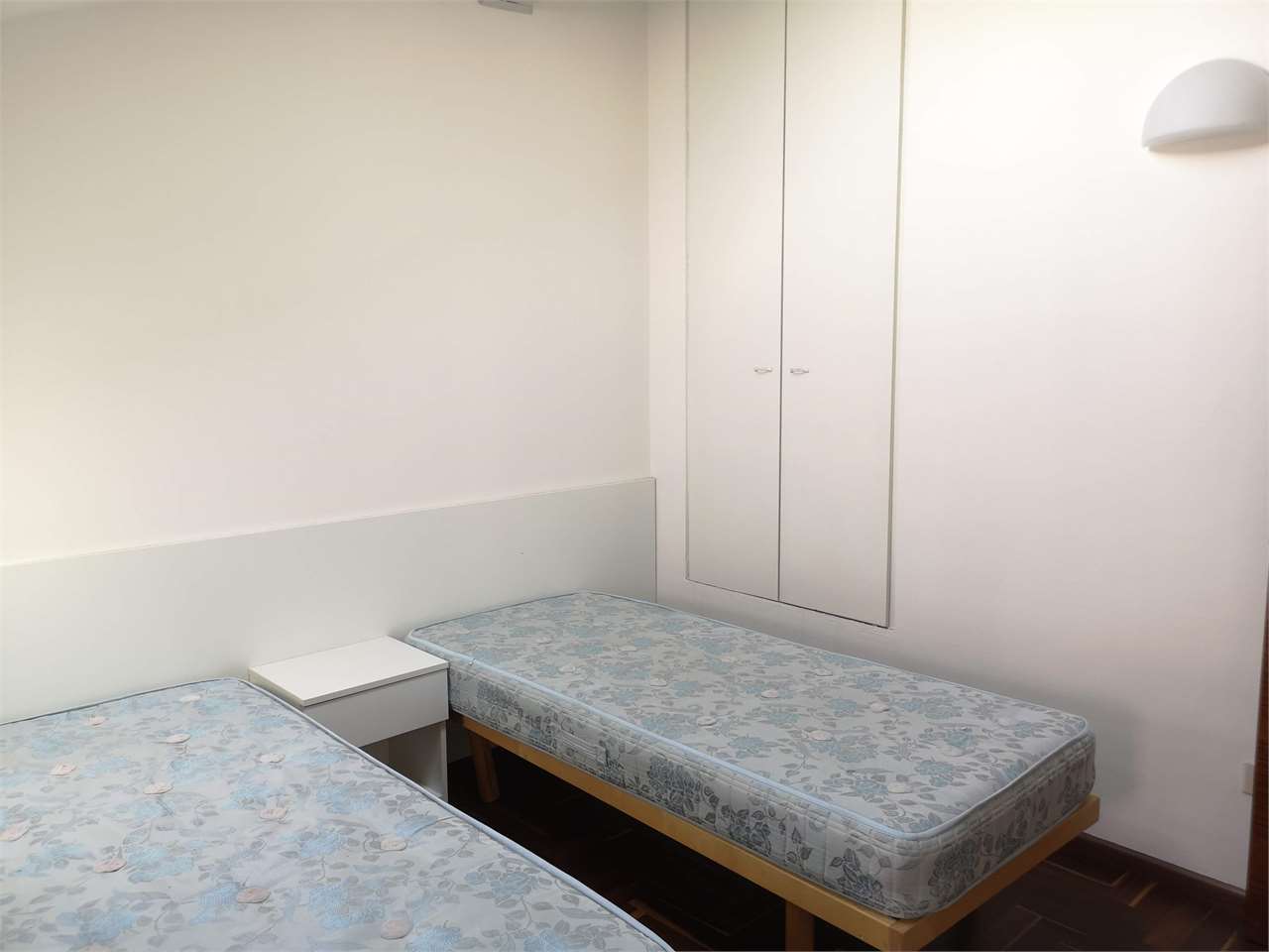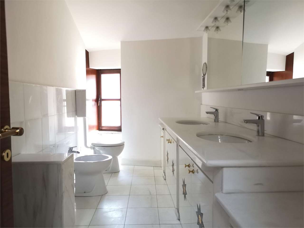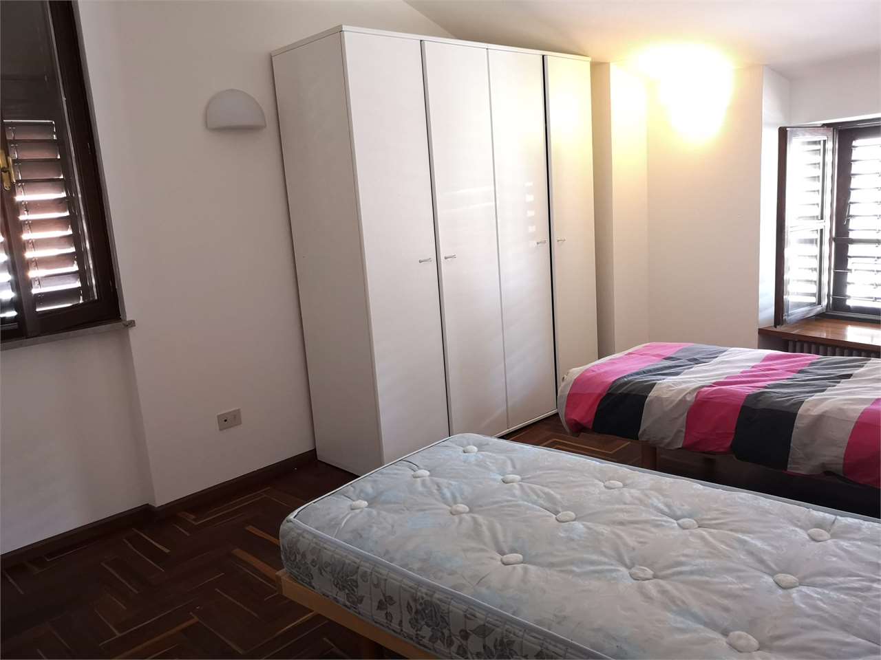 L'appartamento è composto da: ingresso, luminosa zona giorno con angolo cottura e soggiorno in openspace, due camere doppie, una camera singola, doppi servizi finestrati con doccia.