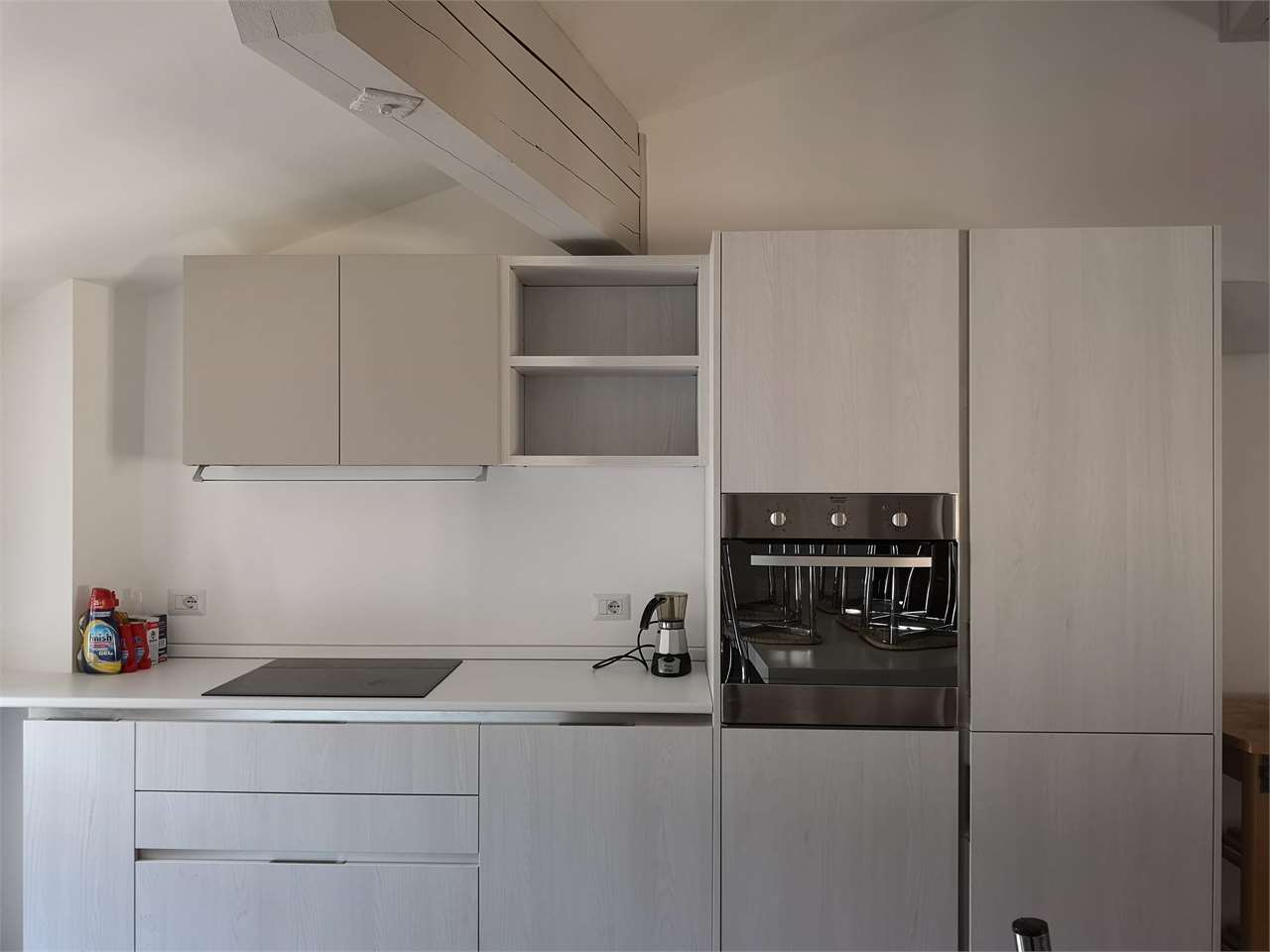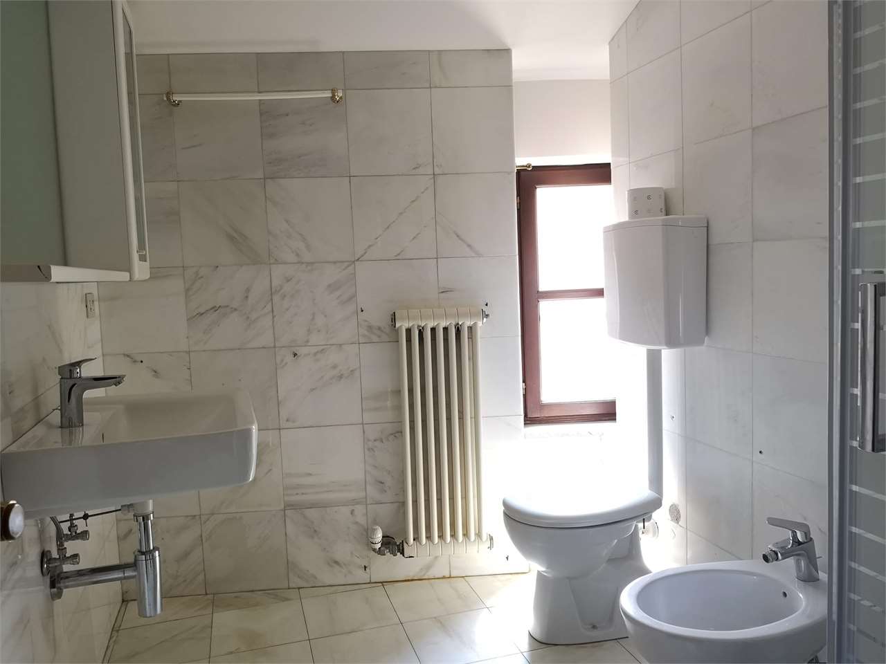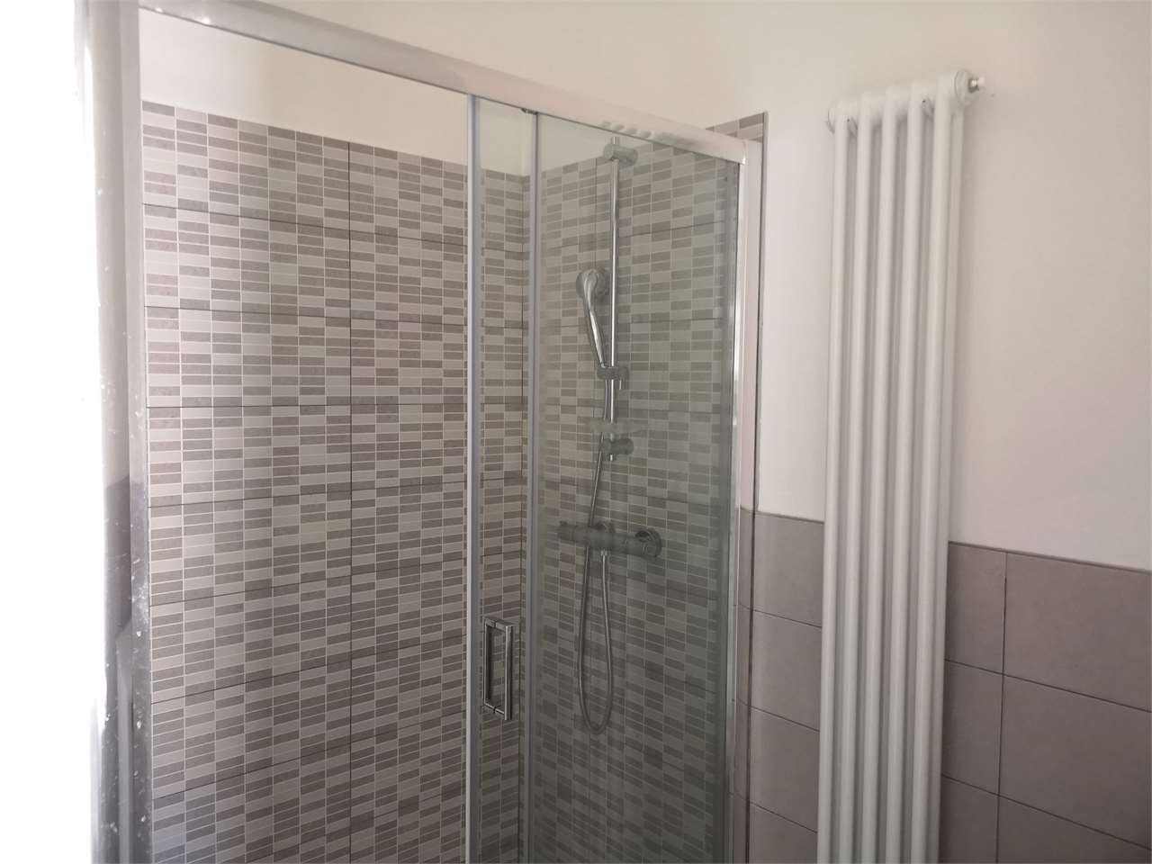 L'appartamento è composto da: ingresso, luminosa zona giorno con angolo cottura e soggiorno in openspace, due camere doppie, una camera singola, doppi servizi finestrati con doccia.