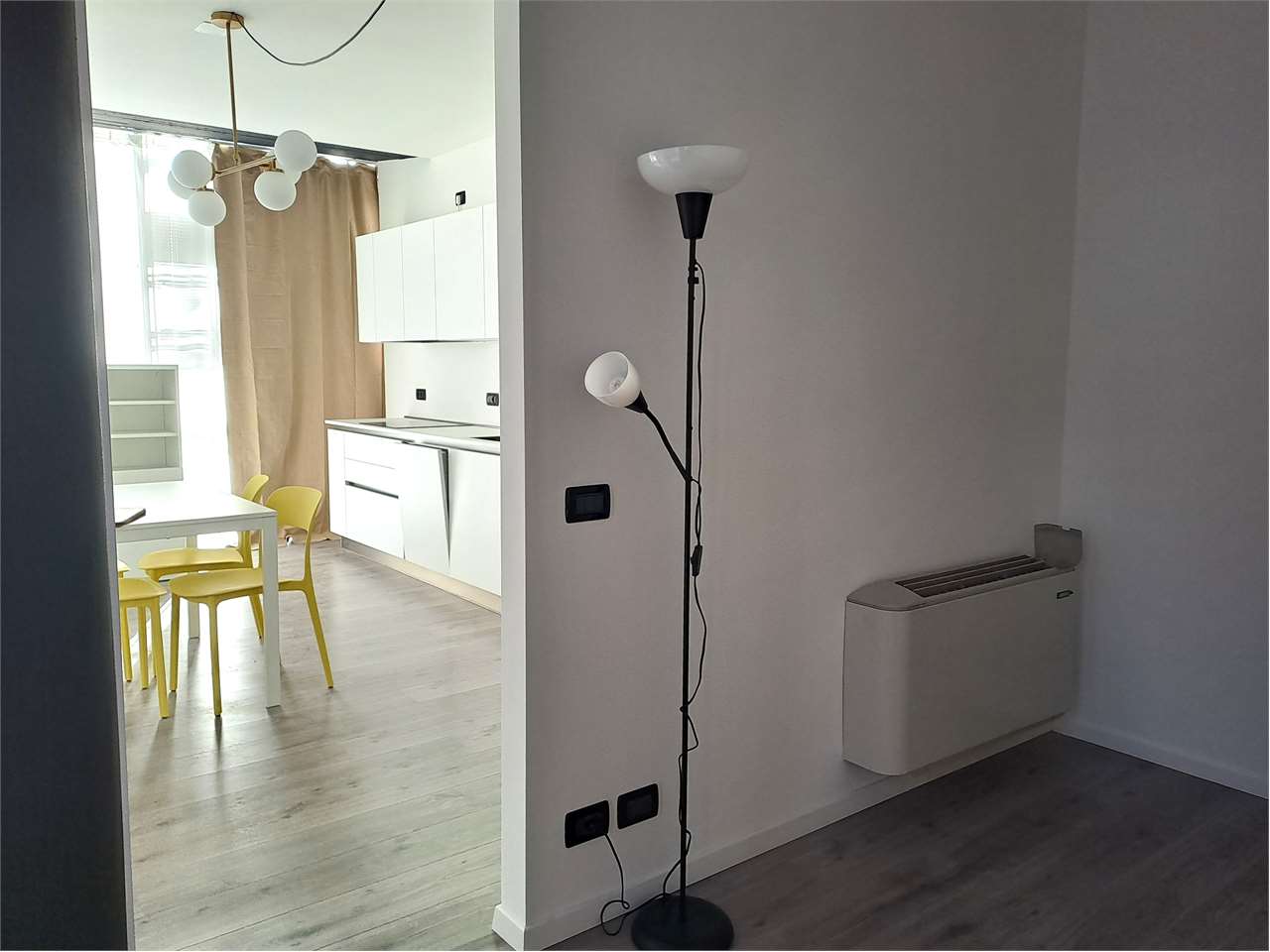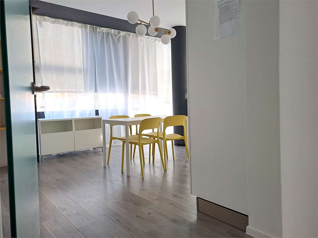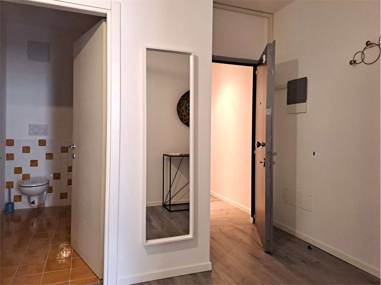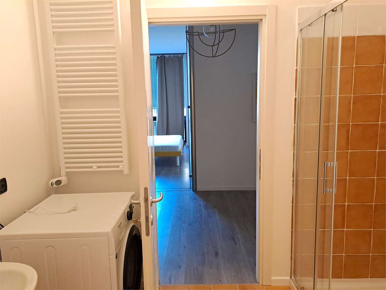 L'appartamento è così composto: ingresso, zona giorno con angolo cottura dotato di piano a induzione e lavastoviglie, pratica seconda stanza/ufficio aperta sulla zona giorno, comoda camera matrimoniale, bagno cieco con doccia e lavatrice.