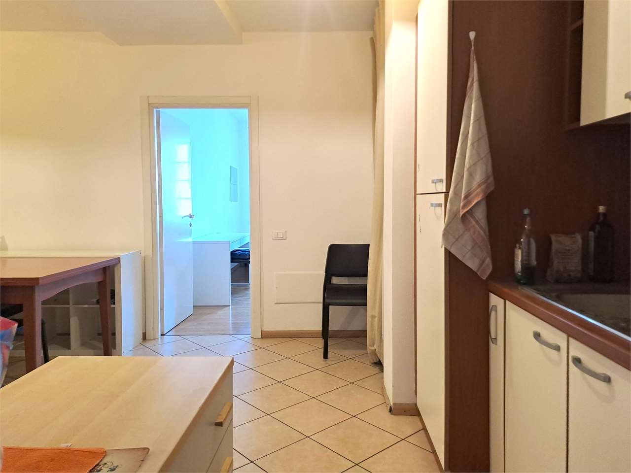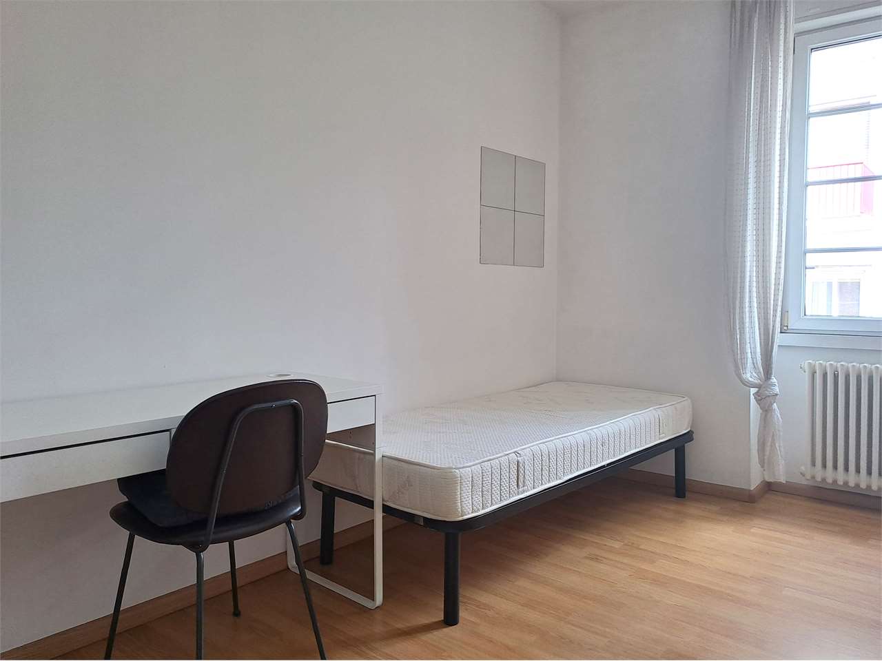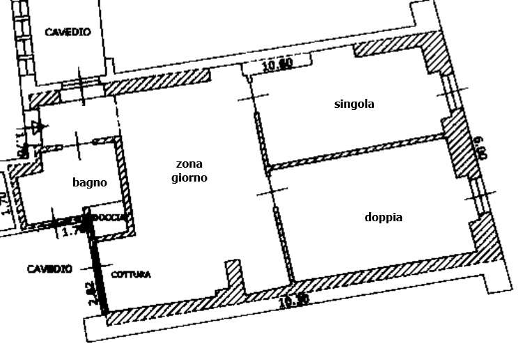 L'appartamento è così composto: ingresso, spaziosa zona giorno con angolo cottura, bagno finestrato con doccia e lavatrice, una stanza singola e una doppia.