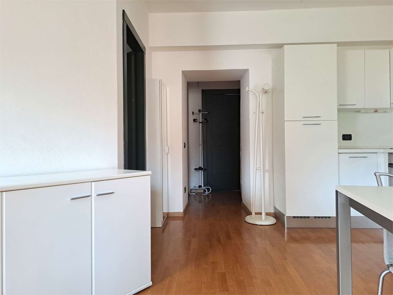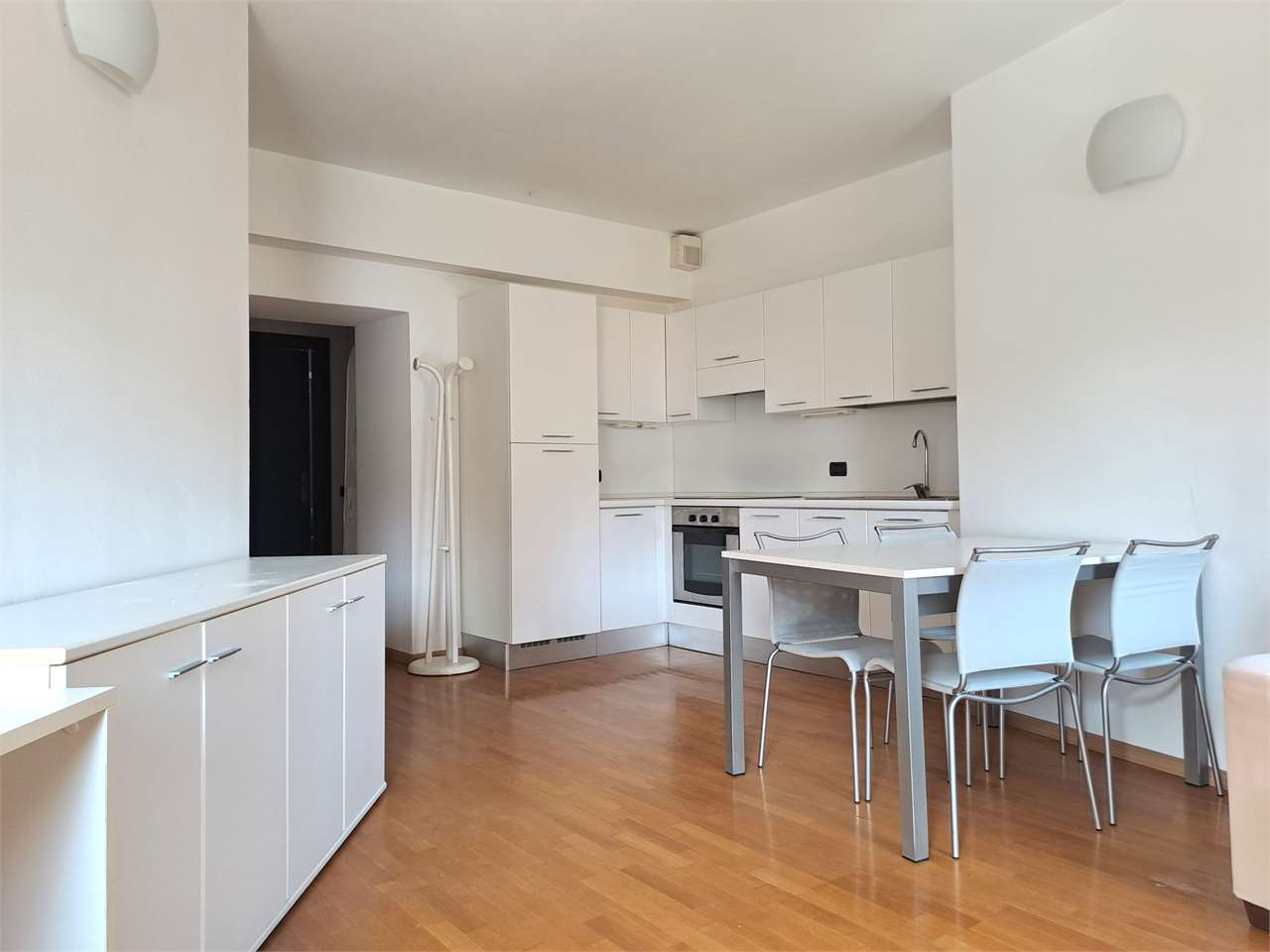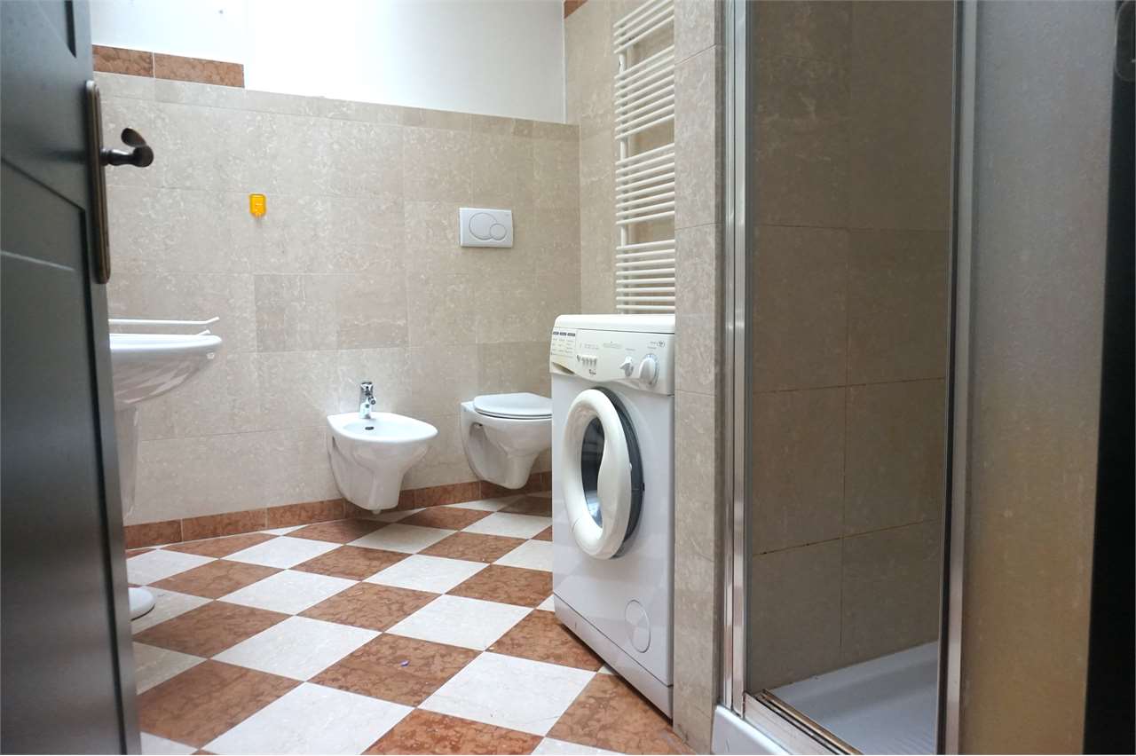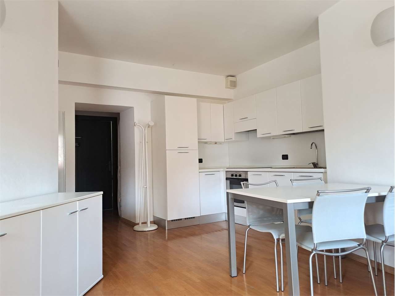 L'appartamento è così composto: ingresso, luminosa zona giorno con angolo cottura, camera matrimoniale, stanza/ufficio, elegante bagno con doccia e lavatrice.